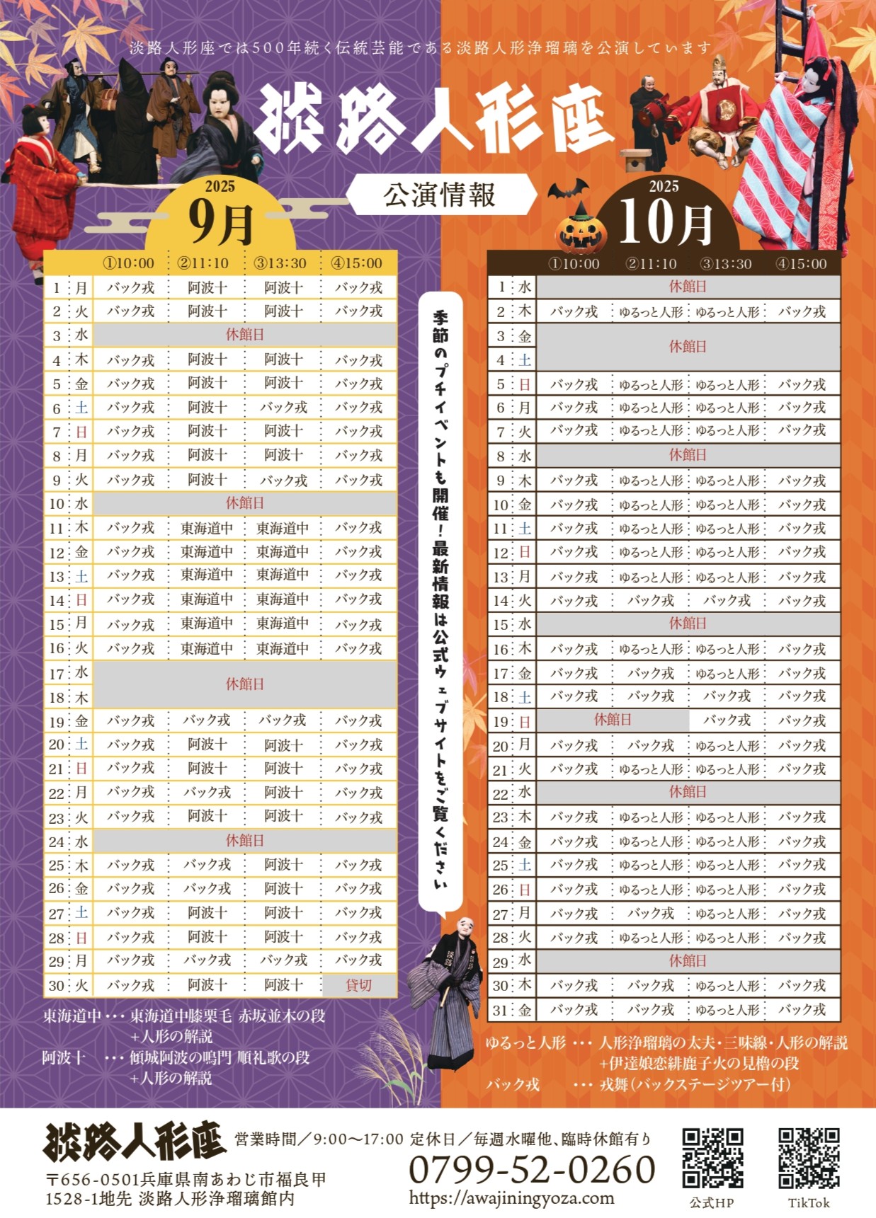 500年以上の歴史を持つ淡路人形浄瑠璃は時代と共に古いものを残しつつ、新しいものを加えながら、その本質は変わることなく継承されています。