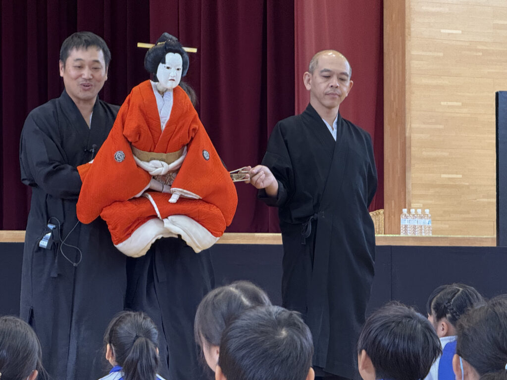 9月25日、南あわじ市立湊小学校でワークショップを行いました。 「質問コーナーでは時間ぎりぎりまでみんな質問をしてくれました。その熱心さを胸に、さらに淡路人形浄瑠璃について知ってくれると嬉しいです」(座員) 写真は学校の許可を得ています。 -