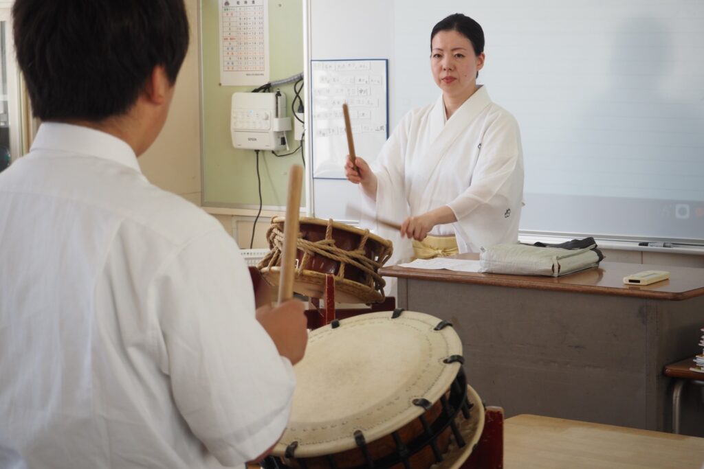 9月9日、南あわじ市立西淡中学校でワークショップ(戎舞体験)を行いました。